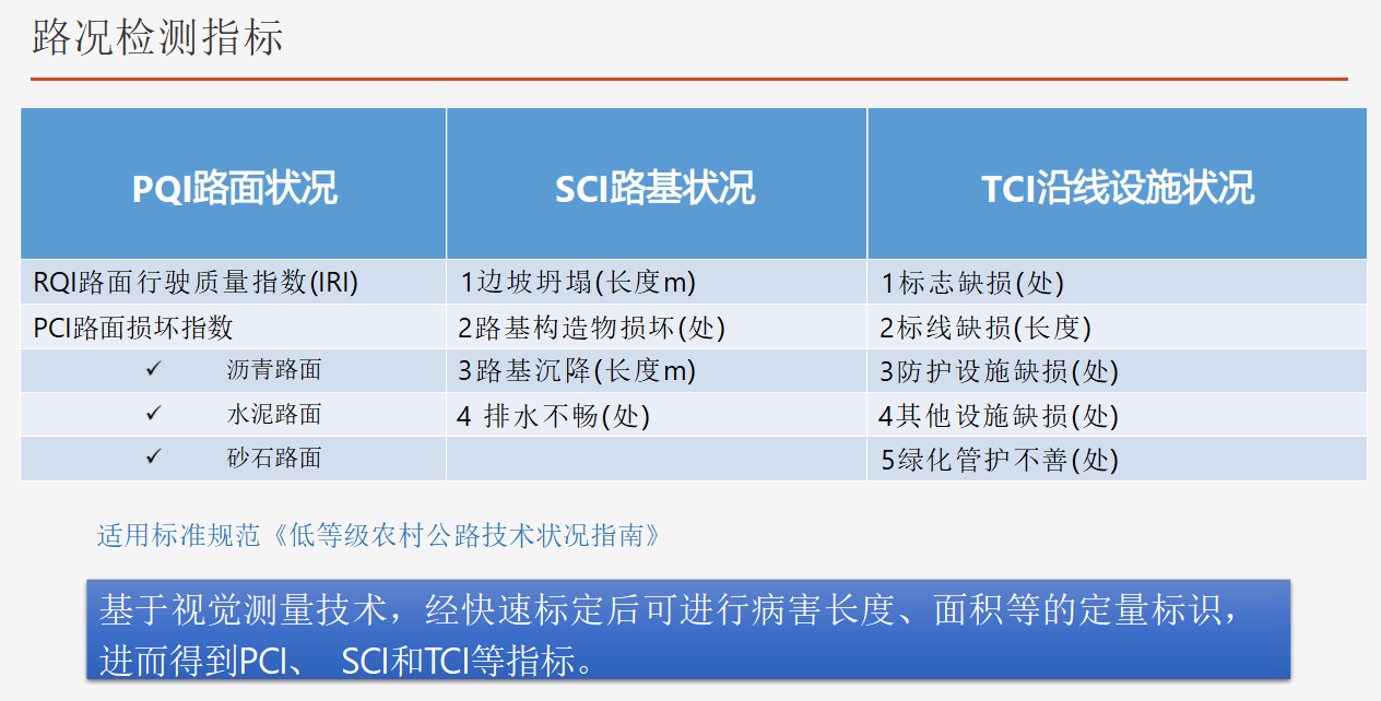 | 檢測(cè)設(shè)備:激光平整度儀器、工業(yè)相機(jī)、GNSS采集裝置 | 檢測(cè)設(shè)備:激光平整度儀、路況綜合采集箱 |